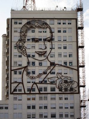 At first, I have to confess that the idea of this project made me a little ill. I’m all for honoring the memory of Eva Perón –she’s an important historical figure after all– but I thought that plastering the side of a gigantic building with a gigantic image was too much. I still think it’s over the top. But honestly it isn’t that bad. Shocking & slightly tacky, yes, but not horrendous.