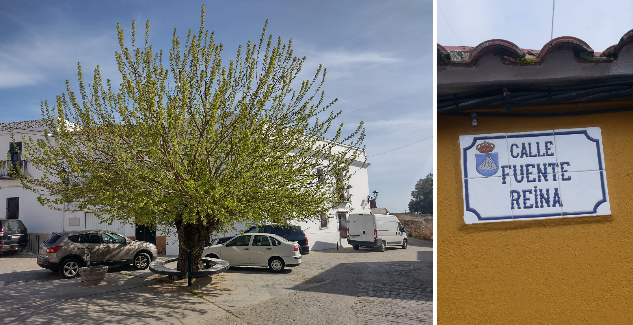 In El Pedroso today, there are only two shady references which may attest to the queen’s visit back in 1526: a street name & a randomly placed coat-of-arms. A large mulberry tree surrounded by a mosaic-covered bench sits next to a small fountain… the end point of a street called Fuente Reina. That tree commands the roundabout & grows back strong no matter how much the town government prunes it! More importantly, did Isabel commission a fountain for the town? Did she stop to drink here? We’ll never know. But also…